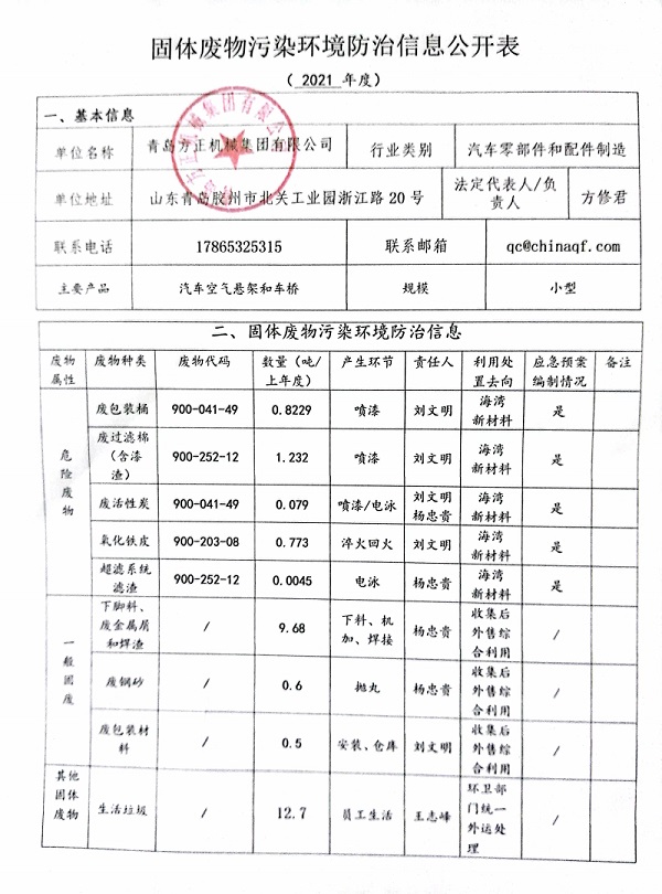 • 固体废物污染环境防治信息公开表